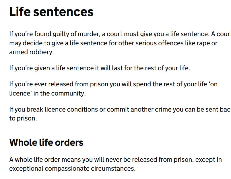 Note, this is not about saying that all people with 'life' sentences should literally be locked up for life, and similarly for the other areas. It's about the fact that if we want people to have trust in what politicians, or ‘establishment’ figures more broadly, say, we should use words clearly, not in ways that actively mislead.