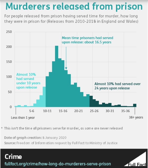 That's still a pretty hefty sentence! I’m not suggesting everyone currently sentenced to ‘life’ should actually be locked up for their whole life.1
