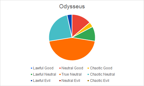 Another great divider, though this one more expected - Odysseus. I was quite pleased to see that a plurality had gone for my own choice - True Neutral.
