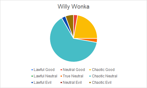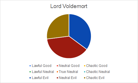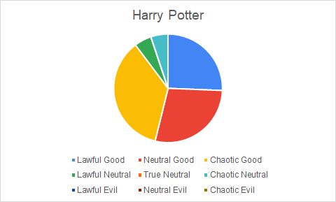 With Harry Potter, it starts to get interesting - our first answer with five different answers, ranging from Lawful Good to Chaotic Neutral (no True Neutral, interestingly).