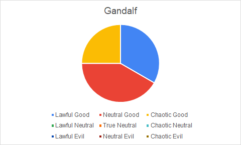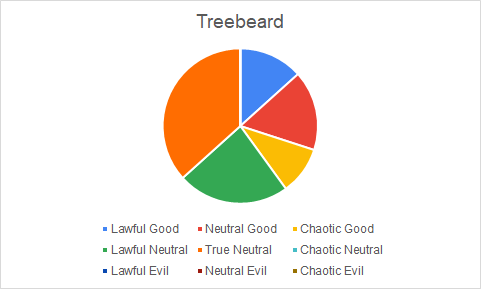 Another interesting character, Treebeard, had been selected as a True Neutral archetype - but while this was a plurality, it was not a majority. The contrast with the other True Neutral plurality, Odysseus, shows that this is one of the tricksiest alignments to define.