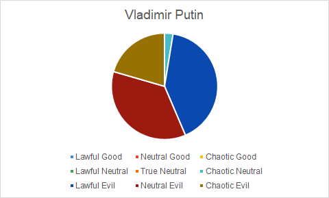 Putin was almost universally thought to be Evil, though a lone respondent plumped for Chaotic Neutral.