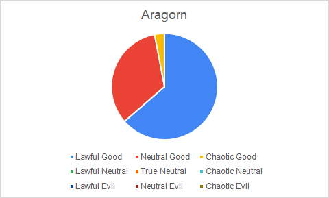 Everyone agreed both Gandalf and Aragorn were Good, but opinions were divided as to what type of Good. Interestingly, though more people saw Gandalf as Neutral Good and Aragorn and Lawful Good, this wasn't fully consistent - there were some who bucked the trend and saw Gandalf as more Lawful than Aragorn.