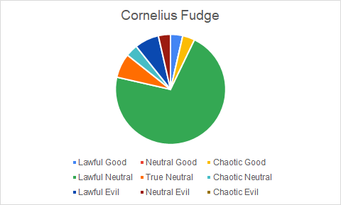 Though he accrued seven different alignments (as many as Churchil), unlike Churchill, there was a clear consensus that Cornelius Fudge was Lawful Neutral - though one person I spoke to suggested that this was actually Ineffective Neutral.