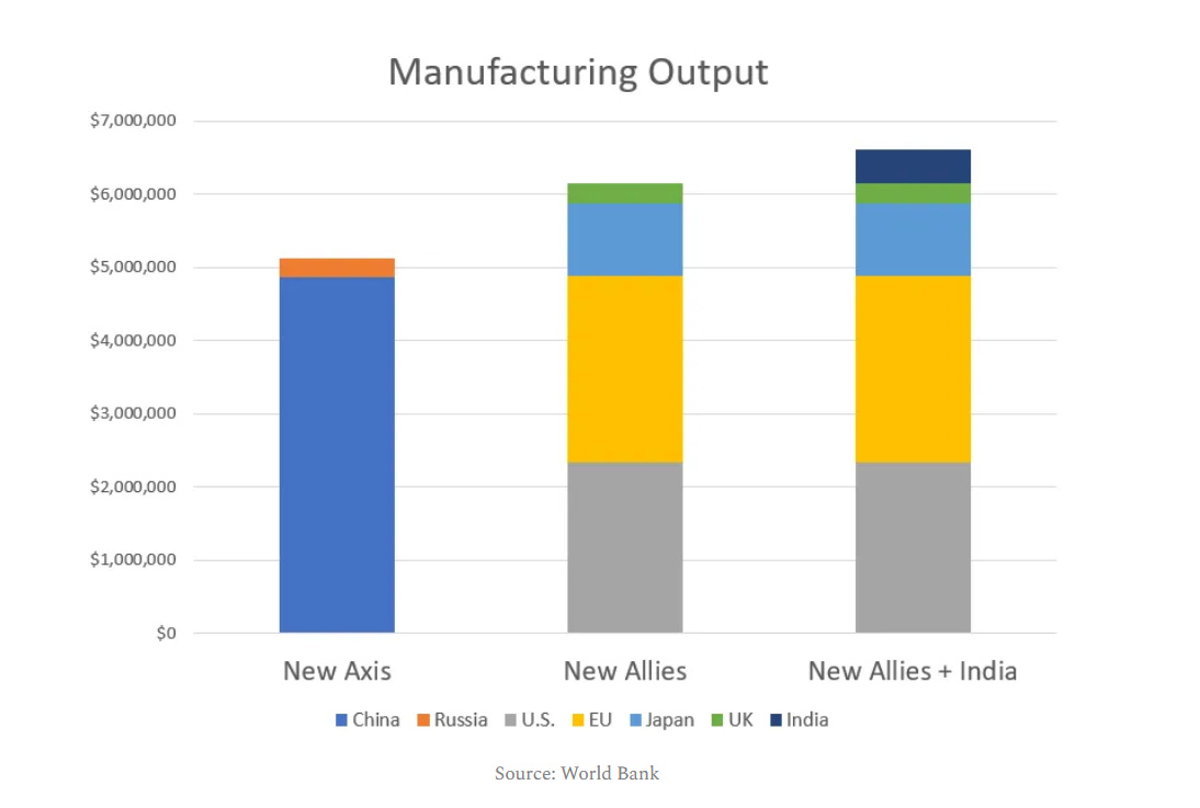 Right now, Russia has invaded Ukraine - and after an initially strong response, the West is at severe risk of being divided politically. Even more worryingly, Russia - a country with the GDP of Italy - appears to be outproducing the entirety of the West in terms of munitions production. Our stockpiles have been drained and Ukraine is feeling the lack on the battlefield. Russia could still win this war (though I sincerely hope they don’t). And that’s the junior partner of our adversaries.