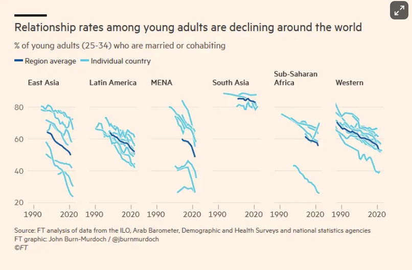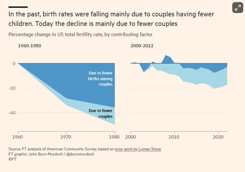, is also compelling:The majority of the fertility crisis can be boiled down to higher expectations—not only financial expectations. Expectations of the type of parent you want to be, expectations for how safe and comfortable you want your kids to be, and the biggest obstacle of all: expectations for who you want to marry.