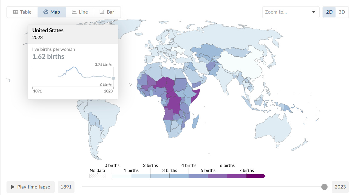 In some cases, these are worth doing anyway: it would be great if houses were more affordable and rents fell, whether or not it leads to more babies. But even if it may help on the margins, we should be cautious about believing that our own pet political project will save the day - simply because in every case there are so many counter-examples.17 As demographer Paul Morland documents in ‘No One Left’, birthrates are falling rapidly in countries with generous childcare and parental leave (Scandinavia), cheaper houses (parts of Europe, Latin America) and more traditional societies (Japan, South Korea). The few counter-examples - such as Israel - are highly sui generis and do not have lessons that can easily be adopted by other countries.
