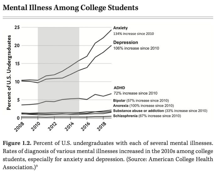 I’ve written before about the rising levels of mental unhealth amongst young people, well-documented by Haidt and others